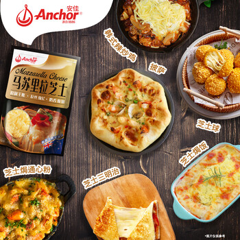 安佳(Anchor)新西兰进口 原制马苏里拉芝士碎208g 烘焙披萨焗饭意面