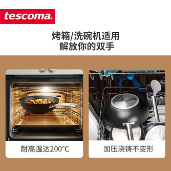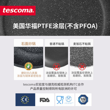 tescoma 石面不粘炒锅带盖 无油烟平底炒菜锅耐磨 电磁炉燃气灶通用32cm