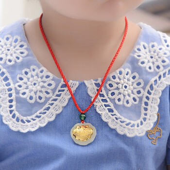 蒂蔻(Tico)岁岁平安金镶玉吊坠项链宝宝款红绳平安锁送婴儿小孩子周岁礼物