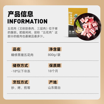 龙大肉食黑猪五花肉800g 去皮五花肉 五花肉块 烧烤肉肠食材 黑猪肉 生鲜