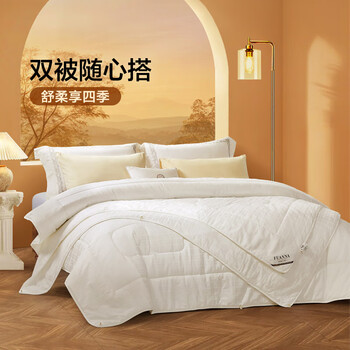 富安娜 舒润纤维被 纯棉面料 二合一子母被 四季被 11斤 230*229cm 白色