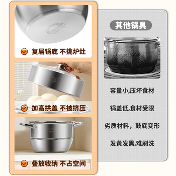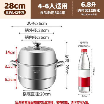美厨(MAXCOOK)蒸锅 304不锈钢28cm二层蒸锅 加厚复底汤锅燃气电磁炉通用