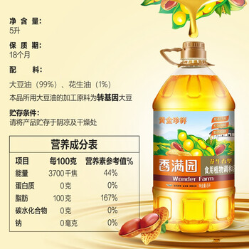 香满园天天谷香 花生浓香型 食用植物调和油5L 食用油 金龙鱼荣誉出品