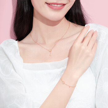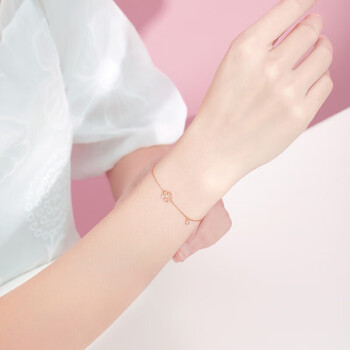 六福珠宝 18K金Dear Q樱花钻石手链 16.5cm-共4分/红18K/约0.87克