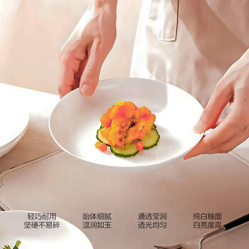 斯凯绨(Sky Top)盘子陶瓷深菜盘纯白碟子骨瓷家用酒店餐具7英寸饭盘4件套装