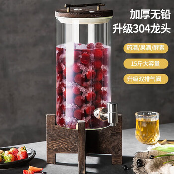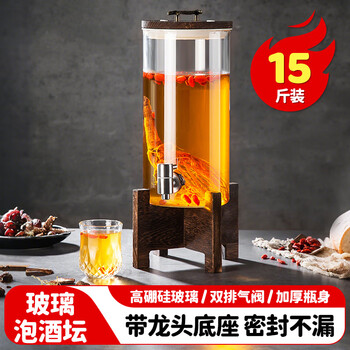 美厨(maxcook)泡酒瓶泡酒坛 酿酒密封药酒罐高硼硅玻璃酒桶带底座15斤装MCX7119