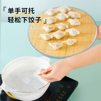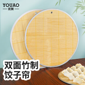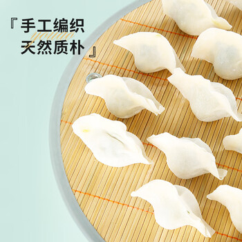 优奥 圆形双面竹制饺子帘 43cm×2个装 盖帘 托盘 饺子垫 水饺盘饺子帘