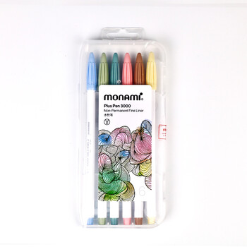 慕那美(monami)新P3000纤维笔水性笔彩色中性笔套装水彩笔勾线笔手帐笔柔和6色04009Z06-S水彩笔