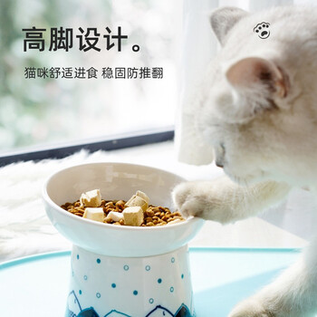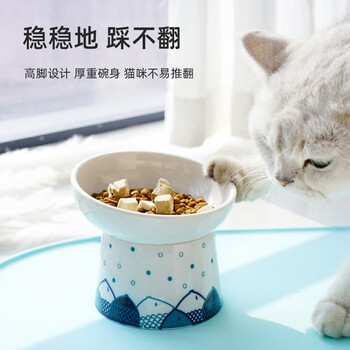喵仙儿猫碗陶瓷高脚斜口猫食盆防黑下巴猫咪防打翻猫粮饮水小狗碗用品