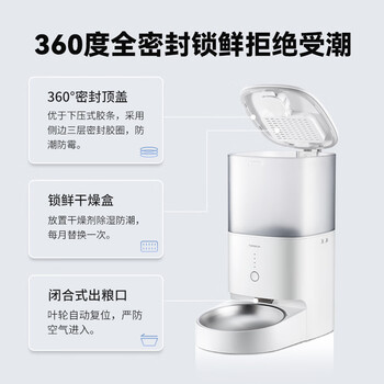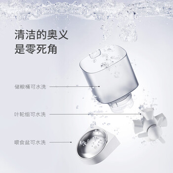 自动喂食器主机*1、食盆底座*1、304不锈钢碗*1、USB电源线*1、电源适配器*1、干燥剂*1、说明书*1、保修卡*1、合格证*1、快速拆洗攻略*1、快速上手指南*1