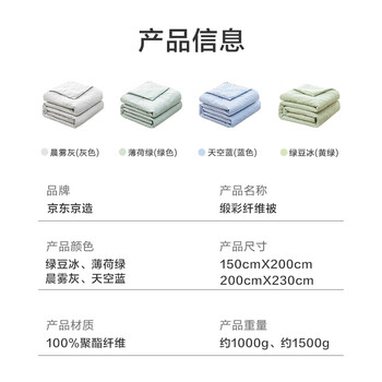 京东京造缎彩色织夏凉被 空调被子A类纤维被1.5x2m晨雾灰