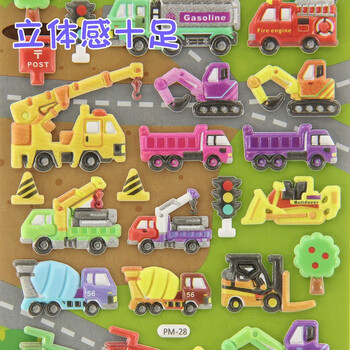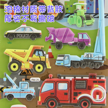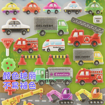 初格儿童贴纸贴画玩具男女孩动漫卡通3d立体泡泡贴小汽车II拼豆