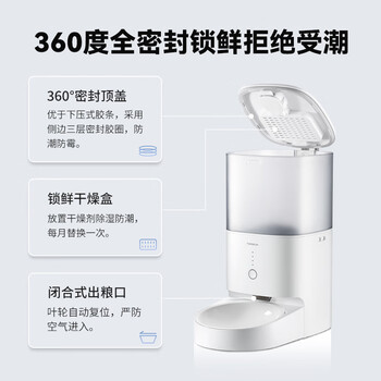 自动喂食器主机*1、食盆底座*1、陶瓷碗*1、USB电源线*1、电源适配器*1、干燥剂*1、说明书*1、保修卡*1、合格证*1、快速拆洗攻略*1、快速上手指南*1
