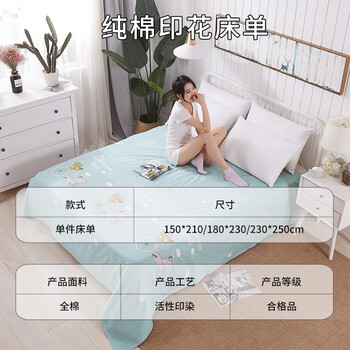 艾薇纯棉双人床单被单床单单件 适用1.5/1.8米床 伊尚蓝 230*250cm