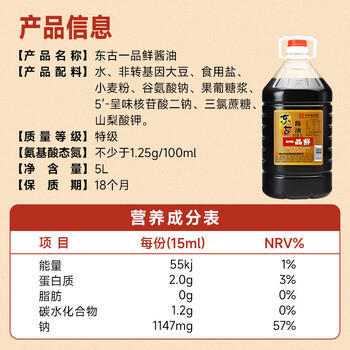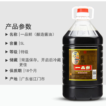 东古 一品鲜酱油【特级生抽】5L 酿造酱油量贩餐饮大包装