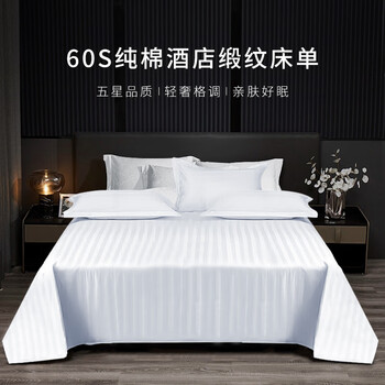 源生活 白色床单单件 星级酒店被单60支纯棉缎纹床裙床罩 175*230cm