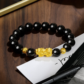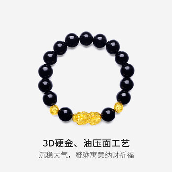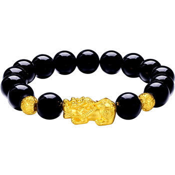 周六福财运貔貅黄金转运珠男玛瑙手链生日礼物ADMN193450 金重约2.77g