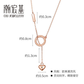 潮宏基悦己缘心18K金项链女爱心吊坠玫瑰金彩金锁骨链生日礼物 约40cm+