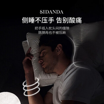 SIDANDA枕芯 95%白鹅绒枕 侧睡枕 颈椎枕 羽绒枕头 加高枕一只装