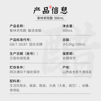 紫林 醋 5度老陈醋 500ml 5年陈酿 0添加防腐剂 纯粮酿造 山西特产