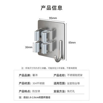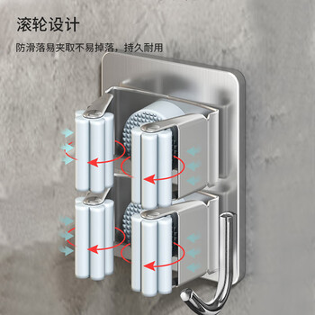 国补备案型号 【304不锈钢】双夹单钩拖把夹(2个装)