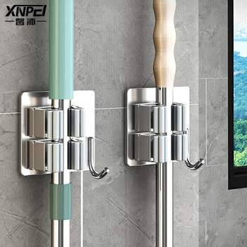 馨沛拖把挂钩304不锈钢免打孔免钉拖把夹挂架浴室卫生间置物架收纳架