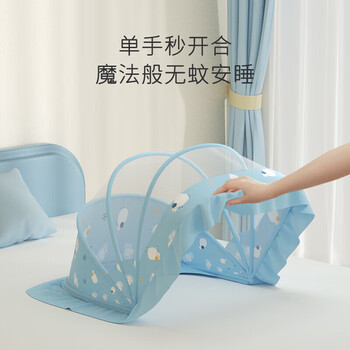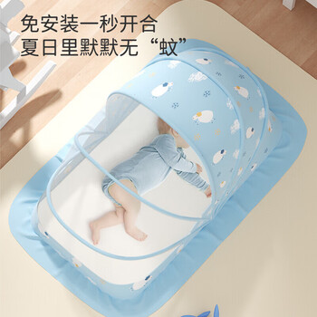 艾薇 婴儿蚊帐 儿童防摔 蒙古包折叠蚊帐 蓝色绵羊 大号【免安装】