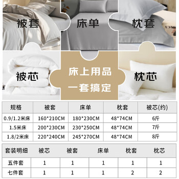 被芯*1 被套*1 床单*1 枕套*2 枕芯*2