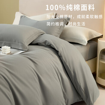 浅灰四件套1.8米+白色酒店冬被220*240cm+纤维枕芯一对