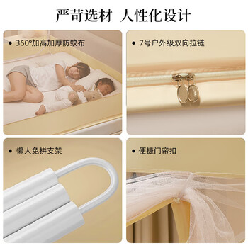 La TorrettaA类婴儿宝宝防摔蚊帐家用三开门加密防掉坐床方顶蚊帐1.8/1.5米床