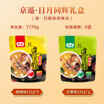 京遥清真逍遥镇系列水煮胡辣汤131g*9混合口味麻辣+五香牛肉味礼盒装