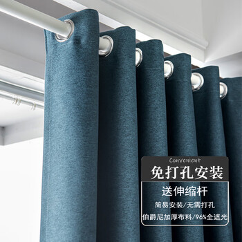 伏腾 窗帘免打孔安装卧室门帘全遮光飘窗窗帘杆简易出租房小短遮阳布