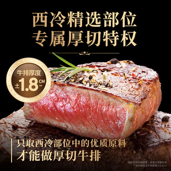 豪客来 星厨厚切黑椒西冷牛排(1.33kg/7片含酱包)整切牛肉生鲜早餐