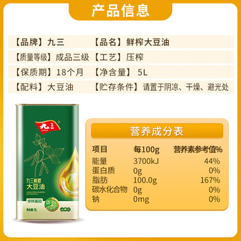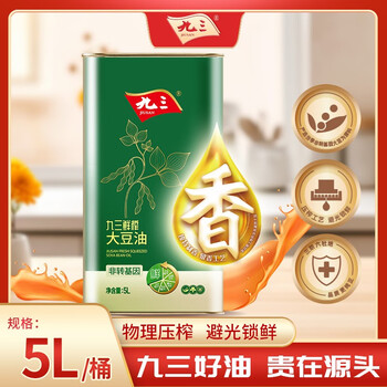 九三 非转基因 鲜榨 大豆油 三级 5L