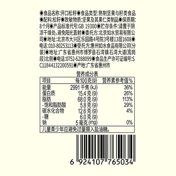 如水 开口松籽450g/罐 每日坚果炒货特产 东北松子休闲零食