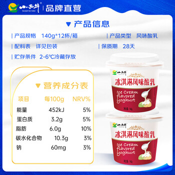 小西牛冰淇淋风味酸乳140g*12杯
