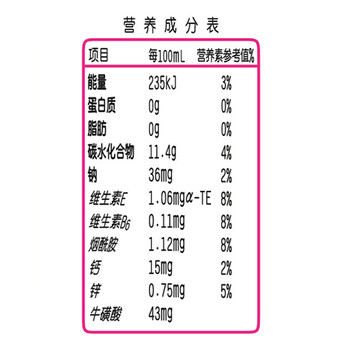 蛋白质含量 0g/100ml