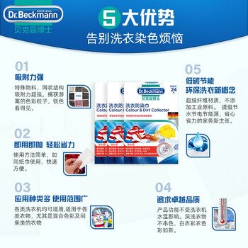 贝克曼博士(Dr.Beckmann)洗衣防染巾72片 色母片抗染色洗衣片吸色片混洗防串色德国进口