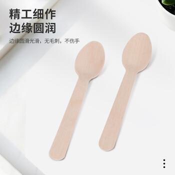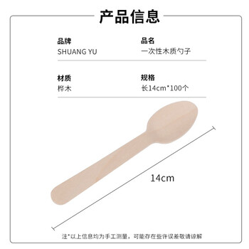 SHUANG YU一次性勺子木质汤勺饭勺100只/包可降解外卖勺快餐勺咖啡甜品勺