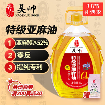昊帅特级亚麻籽油5L*1桶