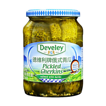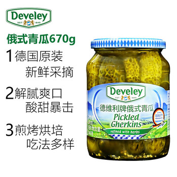 德维利 德国进口俄式青瓜670g*12瓶整箱装 俄罗斯风味酸黄瓜罐头餐饮