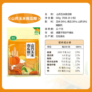 捷氏 山药玉米南瓜糊600g高钙低脂肪无蔗糖南瓜粥即食营养早餐代餐粥