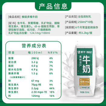 蒙牛焕轻牛奶250ml*10包三合一高钙中老年早餐整箱牛奶手提礼盒装