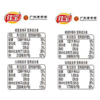 佳宝蜜饯果干九制陈皮盐金枣柠檬老梅丹4口味百草丹260g休闲零食