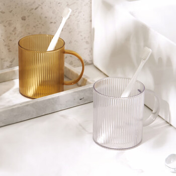 欣沁漱口杯成人儿童刷牙杯旅行便携洗漱杯加厚牙缸杯 条纹黄色
