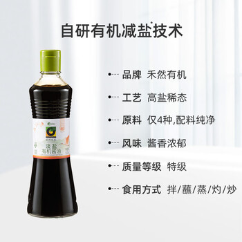 禾然有机淡盐有机酱油500ml【特级酱油】生抽薄盐调味料炒菜 欣和出品