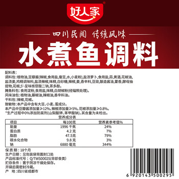 好人家水煮鱼调料210g【0添加防腐剂】 麻辣爽口煮毛血旺多用途方便料包