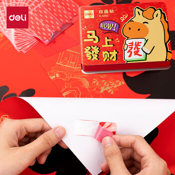 得力(deli)强力纳米胶带无痕双面胶 马年贴春联家用车用透明魔力贴 防尘收纳盒装60片/盒 JL500