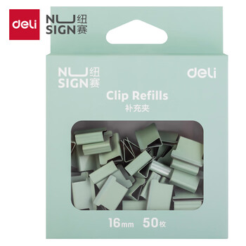 得力(deli)纽赛推夹器夹纸器彩色补充夹 文件夹子备用夹 绿 NS086