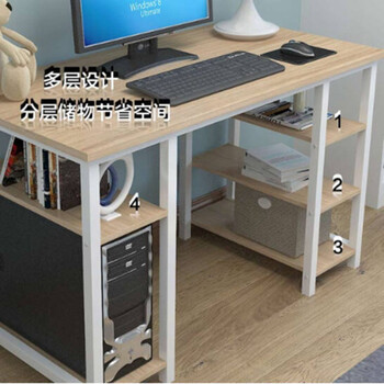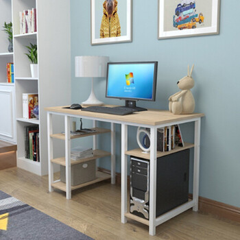 帅力电脑桌 书房板式多格储物带书架主机架台式书桌子120*60原色8102